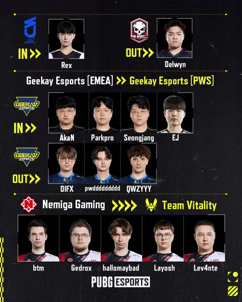 虎扑03月04日讯 PUBG赛事官方社媒更新:重要转会汇总