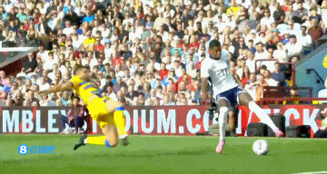 第39分钟,英格兰右侧禁区45°起球传中,凯恩头球攻门顶高。↓